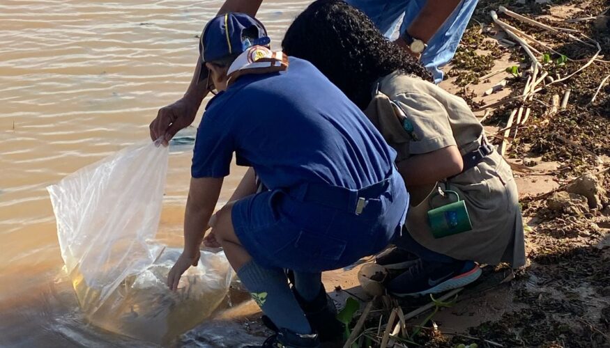 Soltura de peixes, iniciativa que fortalece a vida nos rios, com peixes doados pela Unoeste;