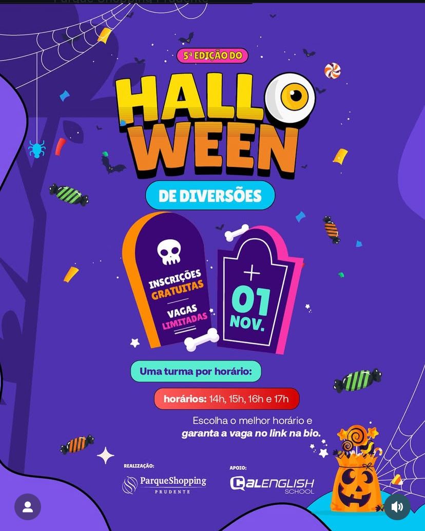 « Todos Eventos Este evento já passou. HALLOWEEN PARQUE SHOPPING novembro 1 - 14:00 - 17:00 « HALLOWEEN PRUDENSHOPPING Alpha Up Run » + Google Agenda+ Exportar iCal Detalhes Data: novembro 1 Hora: 14:00 - 17:00 Local PARQUE SHOPPING