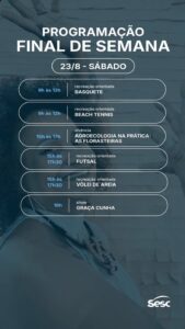 Eventos de 23/08/2025 Pesquisa e navegação de visuais de Eventos Mostrar pesquisa Eventos Pesquisar Eventos Dia de Procurar eventos Navegação do visual Evento Visualizar como ListaMêsDia « Dia anterior Próximo dia » Em andamento 4ª Semana Prudentina do Cavalo agosto 16 - 12:00 - agosto 24 - 22:00 Rancho Quarto de Milha Presidente Prudente, São Paulo Leia mais » 09:00 Programação SESC Thermas agosto 23 - 09:00 - 17:00 SESC THERMAS Leia mais » 12:00 Mc Dia Feliz agosto 23 - 12:00 - 22:00 PRUDENSHOPPING Leia mais » 13:00 2° Insanos Moto Rock agosto 23 - 13:00 - agosto 24 - 22:00 Leia mais » + Exportar Eventos