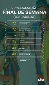 Eventos de 19/10/2025 Pesquisa e navegação de visuais de Eventos Mostrar pesquisa Eventos Pesquisar Eventos Dia de Procurar eventos Navegação do visual Evento Visualizar como ListaMêsDia « Dia anterior Próximo dia » 09:00 Programação SESC outubro 19 - 09:00 - 17:00 SESC THERMAS Leia mais » 17:00 Feira do Rock outubro 19 - 17:00 - 22:00 Centro Cultural Matarazzo Leia mais » + Exportar Eventos